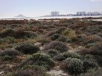 Amplias extensiones de arenas llanas que se cubren en parte con las mareas a pesar de lo poco importantes que resultan. Casa del Ventorrillo. Frente a frente con la orilla sur del estrecho, que forman los dos brazos de este cordón litoral, observo algunas parcelas totalmente terrosas, despobladas de arbustos. Es una zona que debería ser protegida, observé nidos de aves en el suelo hace años conteniendo huevos marrones con pintas negras. No supone suficiente camuflaje frente a los desaprensivos.
