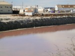 Un paréntesis de ladrillo. Olas de cemento encrespado, paredones azules simulando un oleaje irreal, queriendo ocultar su dislate: puerto de San Pedro del Pinatar, junto a los almacenes, las naves y demás instalaciones de las salinas del Cotorrillo: charcas rosadas, sopa de marisco, que colorean el paisaje y las plumas de los garbosos flamencos con sus carotinoides. Enfrente, tierra adentro, como en otro mundo, estacas geométricas, desafiantes edificios, torres de apartamentos, hoteles, atalayas para escapar de la rutina, castillos reconquistados cada fin de semana, bunquers que defienden de enemigos invisibles, propios. Horror, más horror. Rompieron hace tiempo la pulcra línea del horizonte, el libre jolgorio de las miradas, destrozaron para siempre aquello que costó eras geológicas conformar.