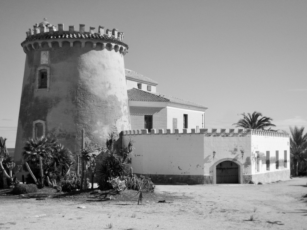 Atisbo desde bien de lejos, como tenían ocasión de hacerlo las naves corsarias, la Torre de la Horadada, en la punta del mismo nombre sobre el puerto deportivo. Imponente construcción que posibilitó a finales del XVI que pudiera asentarse un núcleo estable de población al interior: el Pilar de la Horadada. La costa es muy recortada en esta zona y, según las crónicas medievales, rica en manantiales, bosques y caza. Innumerables calas permitían ocultarse a las naves berberiscas, aprovisionarse y perpetrar robos y secuestros. Sobre restos de un torreón árabe de XII se levantó uno cristiano y posteriormente, en 1591, la actual a cargo de Cristóbal Atonelli con cargo a la ciudad de Orihuela, con el firme propósito de Murcia de hacer lo propio en el paraje del Mojón, cosa que no hizo. Su defensa se vinculó y coordinó con las otras torres de La Manga.