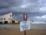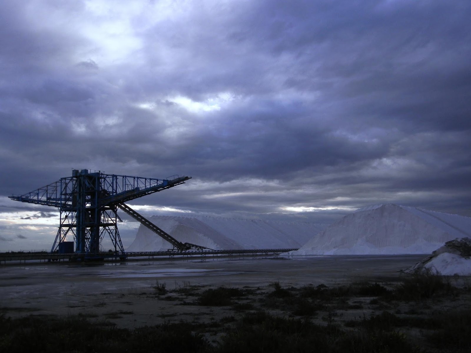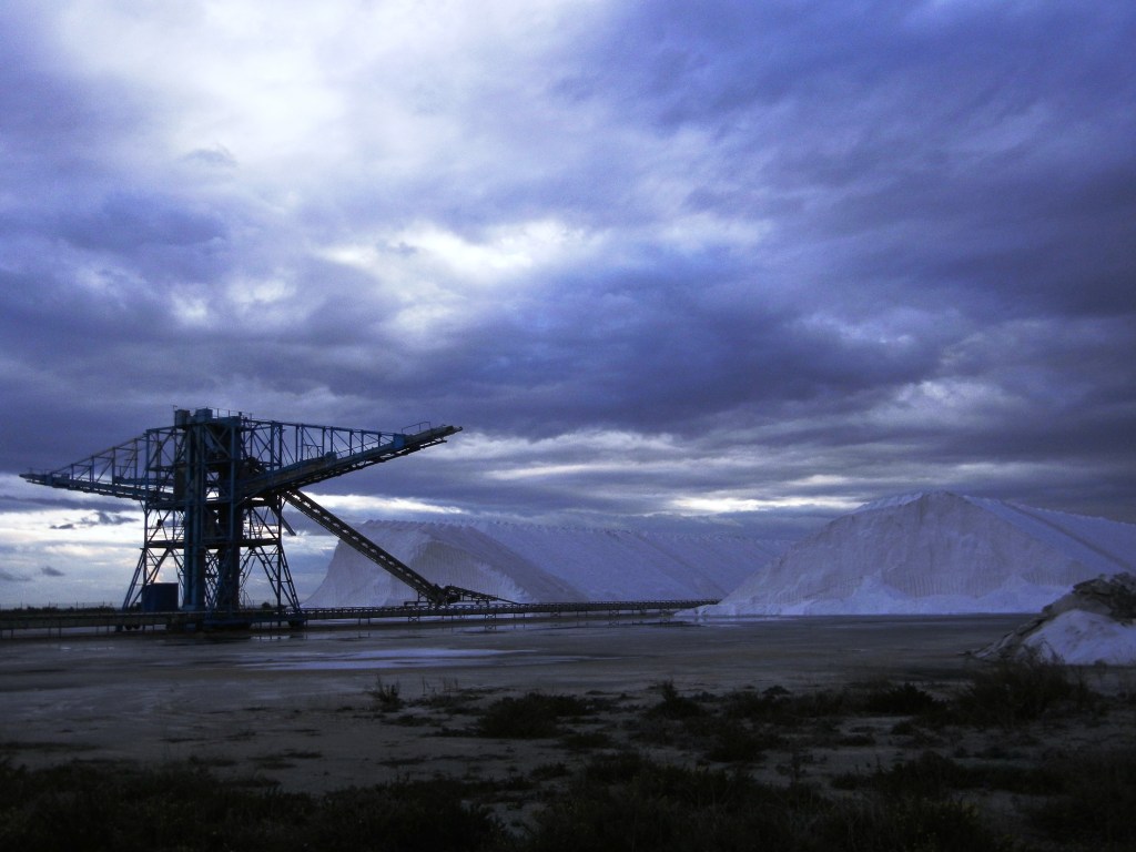 Llovizna más, hace fresco, un telón de ceniza cubre el horizonte cuando alcanzo las primeras construcciones de playa Lissa, en las afueras de Santa Pola, atravieso los almacenes de una hacienda salinera antigua, me paro a contemplar los icebergs de sal apilada en la explanada listos para su transporte.