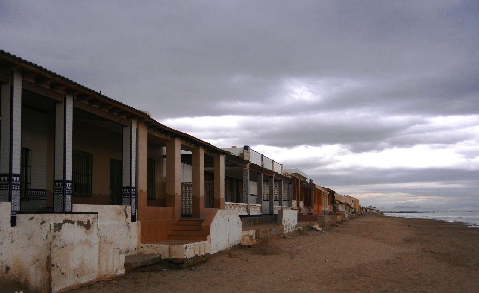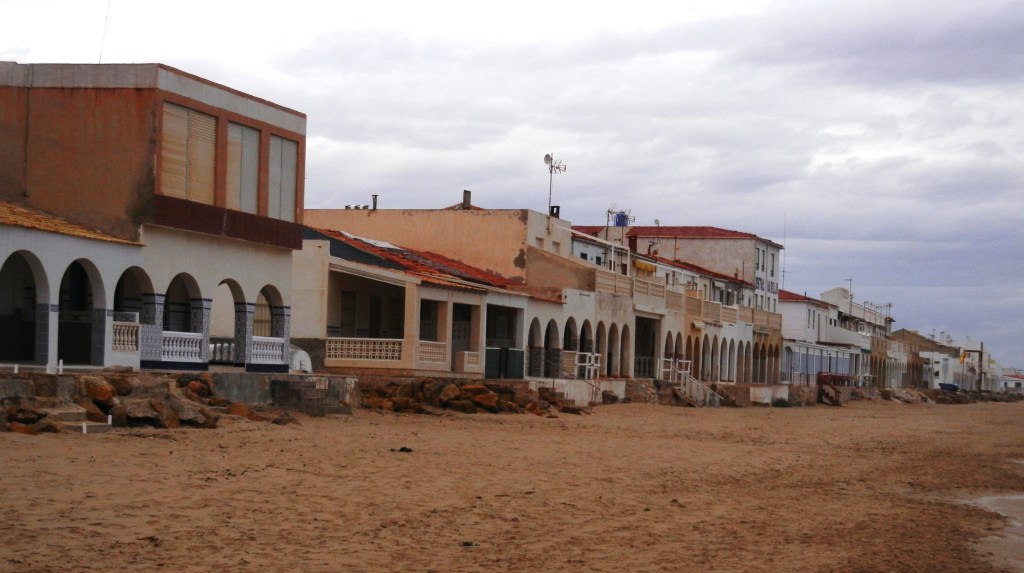 Aquí delante, al alcance de mis pies, aparece una pequeña urbanización con una torreta vigía de socorristas vacía, aguardando al verano y a sus musculosos salvavidas para que entretengan las tardes ociosas de las damas. Otra urbanización después, posiblemente sea La Marina.