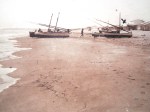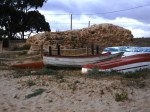 Llego a las primeras edificaciones de Guardamar sobre las 10,00 h, avisto desde muy lejos la escollera, una imponente muralla pétrea, un espigón de rocas que se adentra medio kilómetro en el mar llevando lo que resta del río mar adentro, la Gola del Segura. Playa Centre y playa Babilonia, las turísticas. Documento la formación y fundación del pueblo actual y las lucha de sus habitantes contra las dunas, a través de una interesante serie de carteles, de una exposición al aire libre, que cuelga de los muros de algunas viviendas.