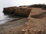 Frente por frente con el Montcaio, una elevación de 106 m. escondida entre pinadas en el lado izquierdo que preside benevolente la escena de rapiña natural con que unas edificaciones perturban esta serena belleza, llego a los restos de un poblado romano y tardorromano relacionado con el comercio de recursos pesqueros y la sal. También subsiste parte de una mezquita con celda-oratorio o rábita califal del X u XI. Apuntan unas cuantas antenas en su vértice (Estación de radio Els Americans) hacia el cielo, pidiendo una clemencia que no llega, siquiera un rayo destructor que fulmine semejante desaguisado. Desde ese otero verdoso ha de ser más llevadera la vista a la hora de escamotear el obstáculo, pero a ras de playa, desde mi posición, rompe absolutamente la línea del horizonte. Dejo para otra ocasión su ascensión.
