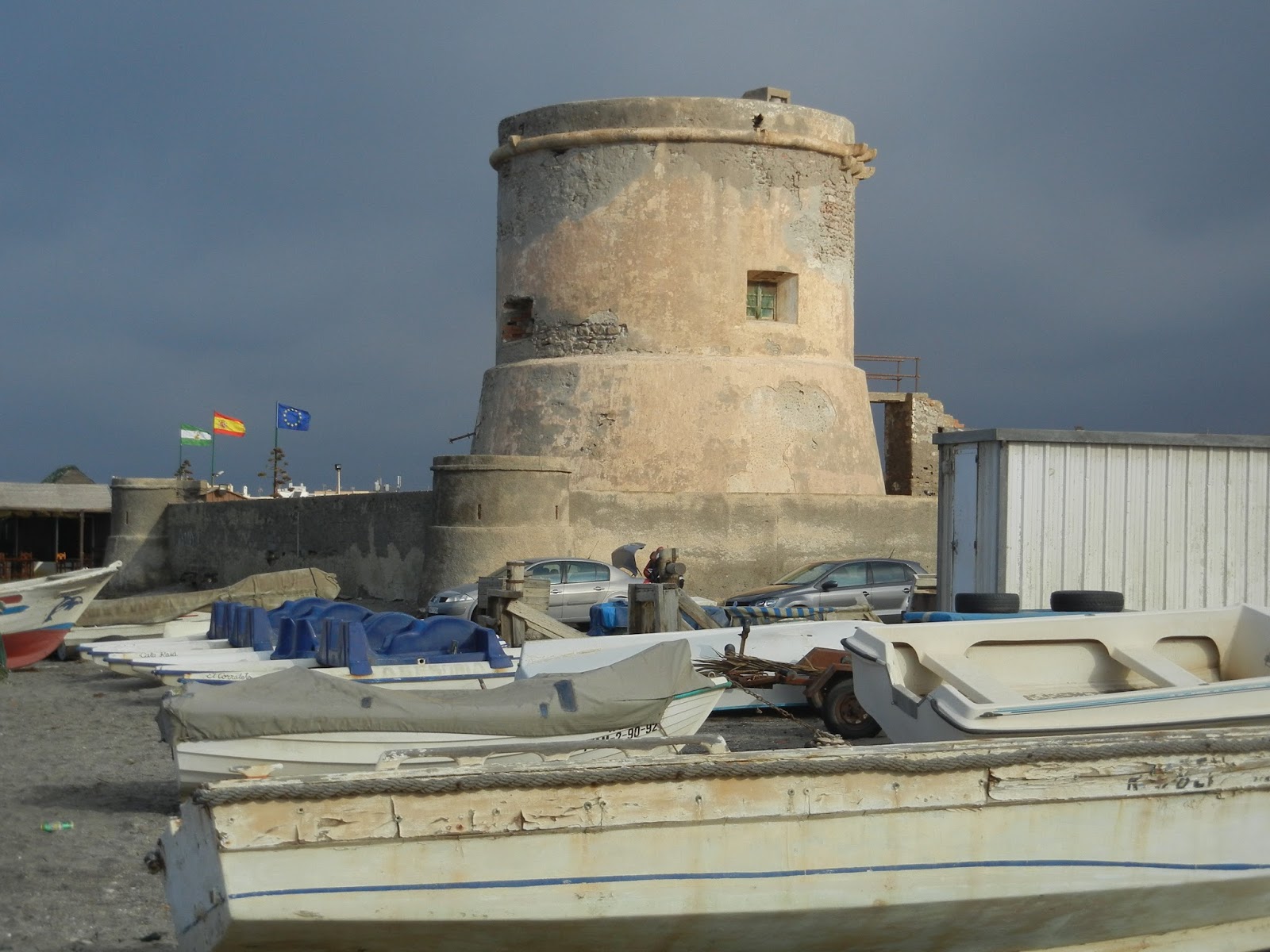 No está a la vista pero existe un arrumbadero de embarcaciones de diversos tipos y dudoso pelaje tras una tapia, algunas con el nombre en caracteres árabes. Son planeadoras, barquitas de pesca, zodíac rápidas, en general de pequeñas dimensiones, cuya función no se hace difícil de imaginar.