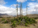 Encuentro en el suelo, en torno a las pitas, pequeñas anclas o garfios que caen después de marchitarse sus flores, dispersándose. La pita puede florecer a los quince años si las condiciones son favorables, si no puede tardar hasta cien años, produciendo unos preciosos racimos de flores amarillas en lo alto de su tronco único (usado por aquí como viga para techar casas) que producen esos curiosos retoños que darán lugar a una nueva planta, muriendo ella después.