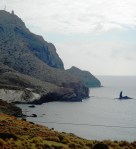“Media hora de camino por curvas cerradas y el faro de la Testa del Cabo aparece de pronto, uno de los más hermosos faros del mundo, sin duda. Las montañas lo aíslan enteramente de tierra y, batido día y noche por el mar, se yergue, solitario y agreste, atalayando la costa del moro, vigía fiel, hoy, de tempestades y naufragios, ayer, de desembarcos berberiscos. Uno piensa con tristeza que un sitio así debería ser baza turística importante y contempla melancólicamente la carretera estrecha, polvorienta y sinuosa, por la que apenas cabe un automóvil, y cuyo acceso, para colmo de la ironía, está prohibido a los coches particulares que –según leí en un cartel- no dispongan previamente de permiso. Hoy por hoy sus únicos habitantes, fuera del torrero y su familia, son los guardias civiles que rondan frente a la playa, a un centenar de metros del faro, y una pareja de suecos desgalichados que desembarcó allí hace meses, en un taxi; con un niño rubio de ojos azules, una tienda de campaña de lona y una máquina de coser (…) Un guardia que ronda por la playa con cara de aburrido me dice que es un apasionado de la pesca submarina, que por allí es muy abundante.”