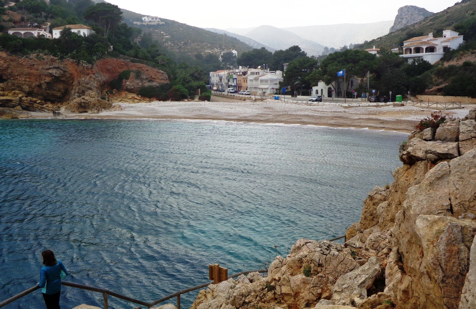 Es necesario descender una culebreante bajada para acceder a unas cuantas casas, con sabor añejo, encajadas en el poco espacio hábil que abrieron unos barrancos en su desembocadura. Luce espléndida, a pesar de la grisura del día, la recoleta playa de cantos rodados entre escarpes rocosos, que cierran en inmensa herradura esta recogida bahía. La sensación de abrigo e intimidad, de estancia particular, de playa privada, es tremenda. Y, a la vez, se percibe una poderosa libertad en el color intenso y profundo de sus aguas oscuras, en la salida abierta que la vista dirige a mar abierto, a través de la bocana de unos 200 m que queda. Se proyectó, como defensa, colocar una cadena tensa de uno a otro lado para impedir la entrada de naves enemigas. Pero finalmente se levantó en la punta derecha, la más elevada, el Fortín de la Granadella. Su estado es ruinoso, quedan escasos restos que revelan un castillote en planta de pezuña de buey, ferro del caballo, reciente, construido en 1739, similar al de Moraira.