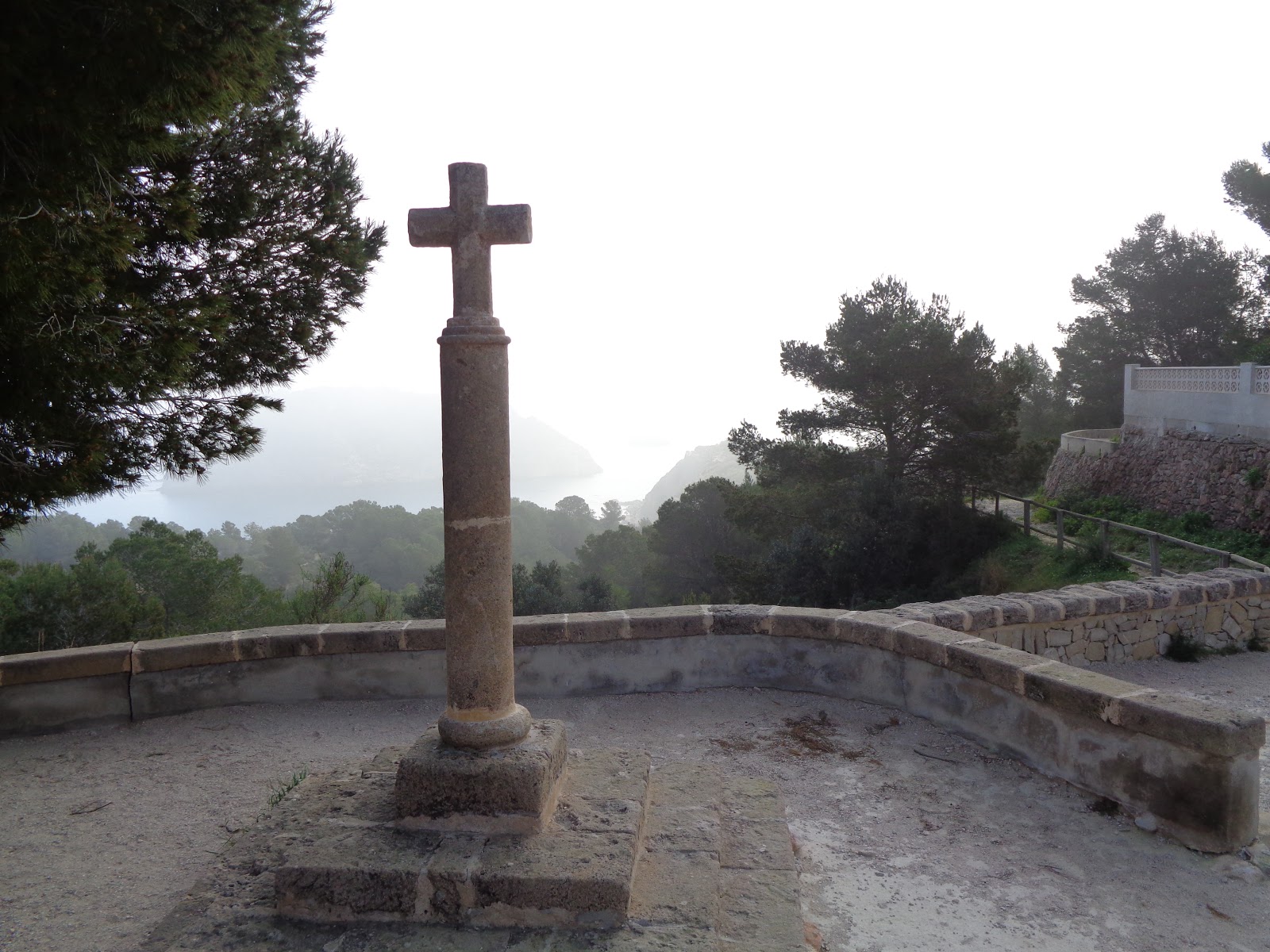 Son visibles en línea recta, en un día despejado, los paredones de la isla de Ibiza. La separación exacta, según Iberpix, mínima, es de 83 km desde aquí hasta el islote de Es Vedrá, primer territorio del este deIbiza, eso me supondría 4 etapas de esta ruta costera que recorro, caso de que construyeran un puente (no desde Valencia hasta Mallorca, como dice la canción, sino desde este cabo a Ibiza).