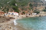 La playa de la cala surge como un paisaje tras la batalla, el suelo de cemento y hormigón quebrado se amontona destrozado en una escombrera que ha levantado el oleaje del último temporal. Almuerzo ligero sentado donde buenamente puedo y me planteo el regreso. Desisto de llegarme a la cala de los Testos (tiestos, recipientes para coger agua que gotea, porque así se abastecían los pescadores), muy recomendable por su belleza inmaculada y aislamiento, pero queda mucha faena para hoy. Queda anotada debidamente en el catálogo de enclaves solitarios a revisitar, de felices excepciones.