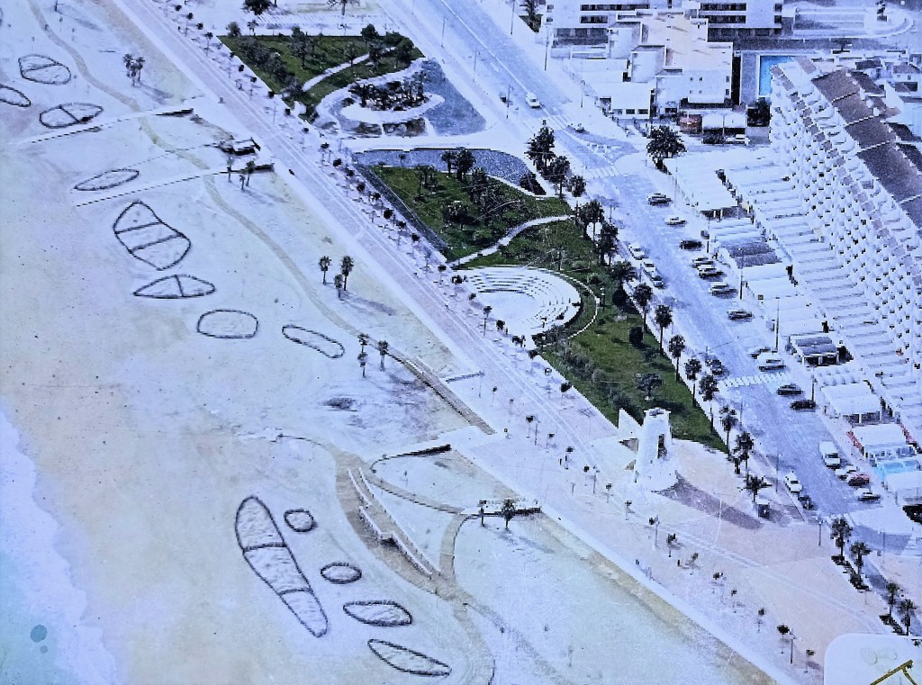 Con estos barruntos históricos acometo la playa del Norte, tan ancha y larga que no precisa de escolleras para mantener su amplitud, el tómbolo del roquedo debe ser suficiente para mantener a ralla las corrientes marinas y preservarla. Aparece una pequeña duna artificial de recuperación y contención hacia el interior de la playa, que delimita el territorio del arenal de la proliferación urbanística tan numerosa que se da. Parece que, a pesar de su escasa entidad, al menos ha conseguido mantener a raya el afán inmobiliario. Aporta una escueta nota de naturaleza al menos, entre tanta monstruosidad edificadora. Esta regeneración se produjo a partir de 2008 con la aportación de arena, la instalación de barreras o captores de mimbre y la plantación de especies psamófilas autóctonas (adaptadas a suelos arenosos salinos y móviles) como el barrón, la espigadilla de mar, lastón, loto de mar, alhelí, etc. así como pasarelas de madera.
