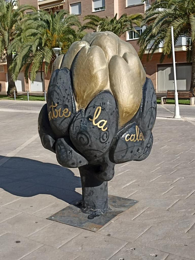 Se cultiva desde el siglo III a. C., depurativa y muy saludable por antioxidante, reduce el colesterol alto y la hipertensión, elimina grasas y toxinas en la sangre y los intestinos, entre otras virtudes. Es la única planta comestible de la familia de los cardos. Existe una feria anual en Cerda, provincia de Palermo, Sicilia, a finales de abril, centrada en ella, con numerosas y suculentas recetas, hasta en helado se prepara. Me tiro de los pelos por no haber asistido todavía, aunque, en mi descargo, he de decir que me aproximé: visité la isla un verano, sirva como una primera toma de contacto. Y prometí regresar. Será entonces cuando acudiré a presentar mis respetos ante la estatua que hay dedicada a ella en la plaza, mucho menos atractiva que la que he encontrado en Benicarló, desde luego. Mientas tanto, mientras eso llega, me consolaré tomando, de vez en cuando, un Cynar, licor de alcachofa precisamente. No hay que extrañarse de ello, los he probado hasta de bellota, en Cáceres.