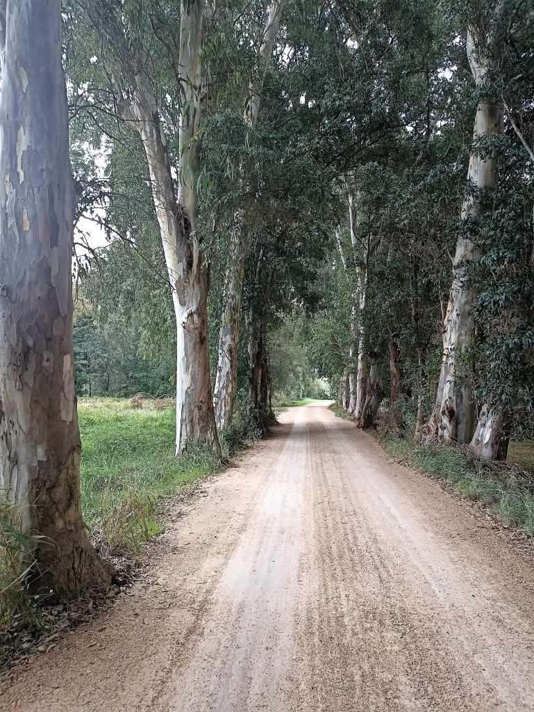 Camino a buen ritmo, me asomo de vez en cuando al canal natural del lado izquierdo, asustados patos y pollas de agua, sorprendidos en sus quehaceres, corren alocadamente sobre la superficie del agua a grandes zancadas, improvisada pista de despegue, para coger velocidad de despegue.