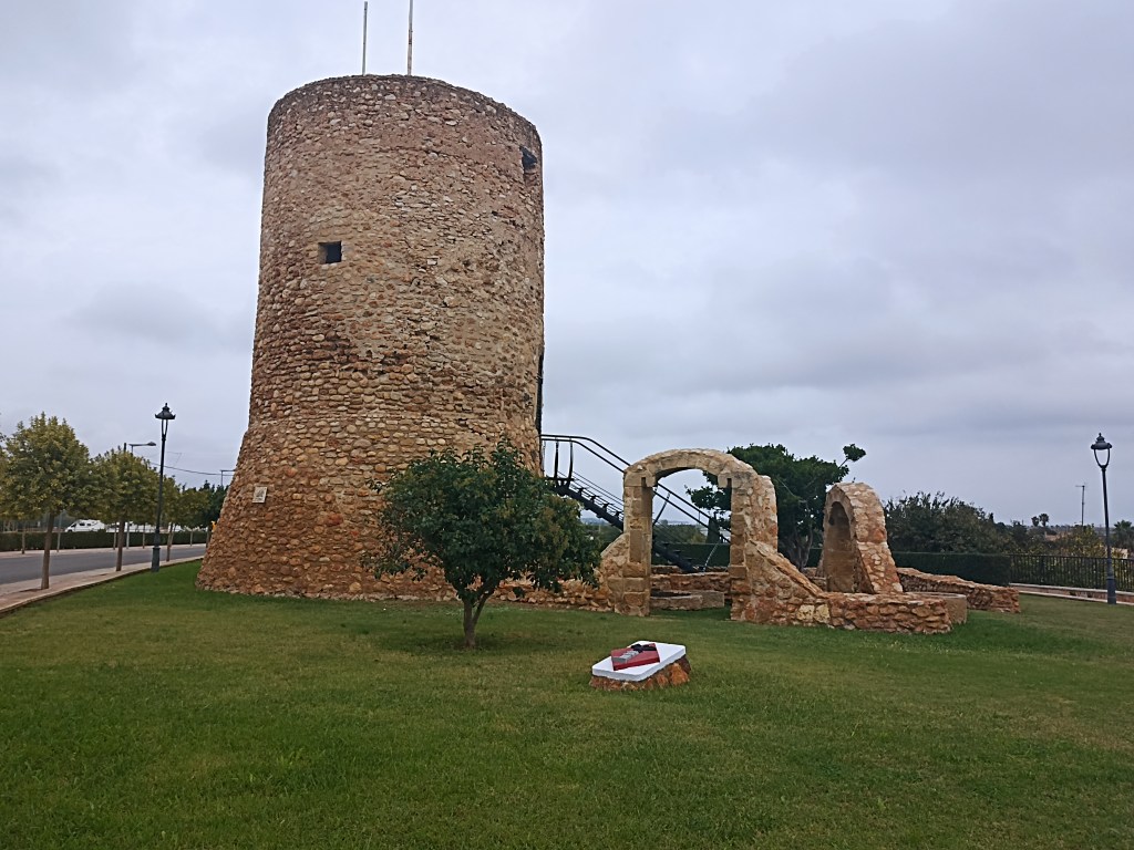 Aunque tengo en la cabeza la agenda diaria de los tramos a seguir, los desvíos y contingencias posibles, las torres y castillos que cubrir, toda la información que resulta imprescindible, mis apuntes, me hundo en el abatimiento. Paso por unos momentos de duda y desánimo, me planteo abandonar. Me siento en un banco junto al camino en las afueras de El Ligallo, tomo un bocado, una mandarina. Me sereno, hago un par de llamadas a conocidos para ver de recuperar el GPS, imposible. Para poder utilizar al menos algún programa de navegación, algún plano del teléfono móvil. Esa posibilidad, con unas cuantas explicaciones que me dan, añade opciones. Recobro la calma, recupero el ánimo y me pongo de nuevo a caminar.