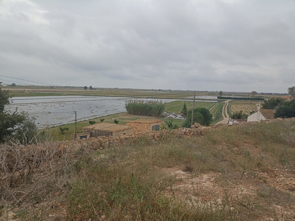Un cartelito anuncia que por aquí transcurrió una autopista hace dos mil años: la Vía Augusta. Recorro estas tierras un poco más altas, el reborde costero antiguo, un auténtico balcón, un mirador que me permite relamerme otra vez en la contemplación de la amplitud del delta. Los ricos sedimentos depositados quedan unos metros más abajo, cubren una extensión que anega la vista de verdor, de fertilidad, donde antes se situaba la laguna de Les Olles, hoy reducida a su mínima extensión.
