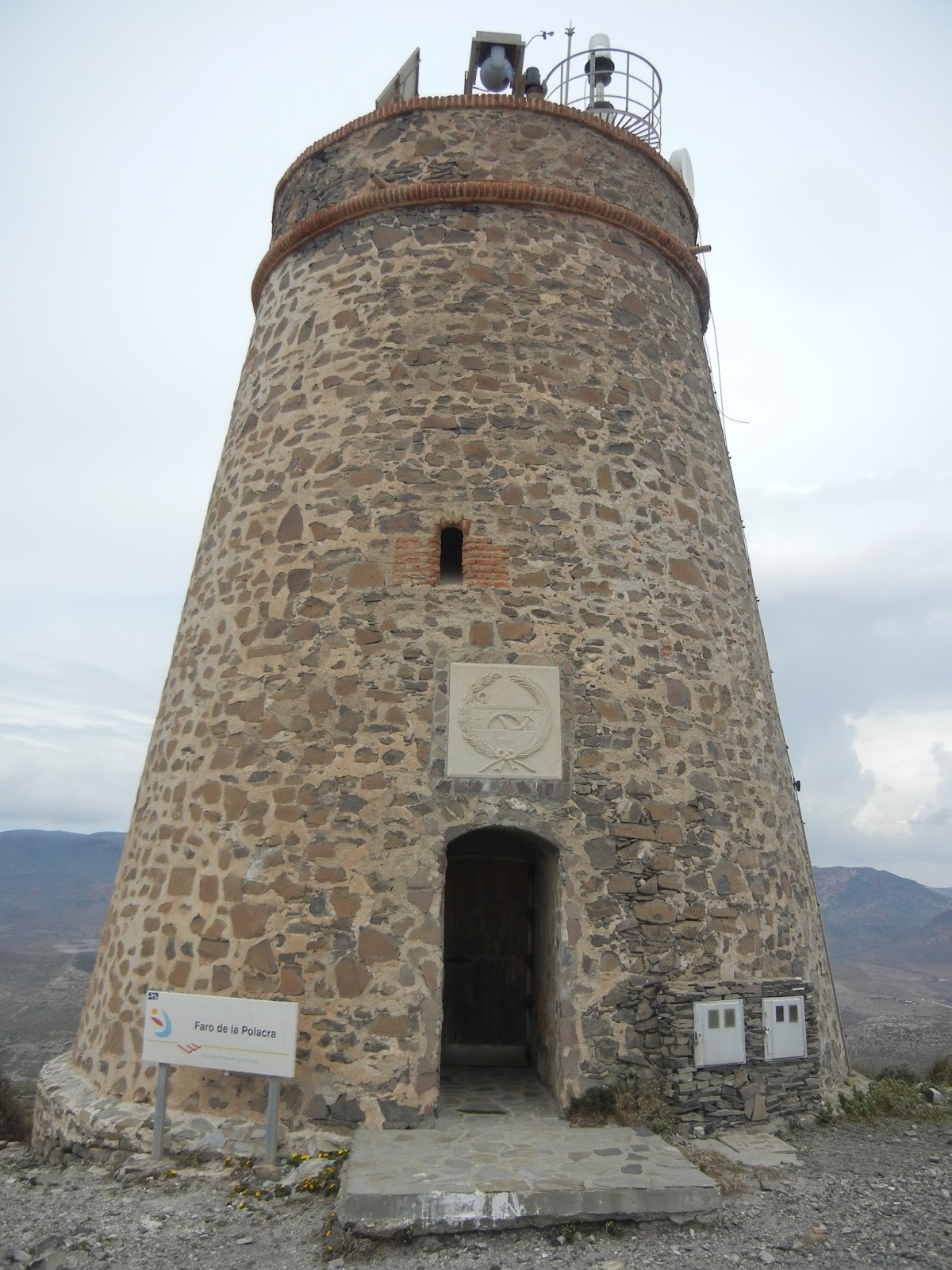 Desciendo la ladera buscando hacia el interior la Torre de los Alumbres que protegía el primitivo asentamiento poblacional de Rodalquilar del pillaje berberisco en esta codiciada zona, habitada desde antiguo por sus minas de alumbres (un sulfato de aluminio y potasio muy apreciado en medicina como astringente y también como desinfectante para después del afeitado). Entre una plantación de palmitos muy descuidada, a pesar de contar con riego por goteo, sobresale poderosa su silueta. Al llegar a sus inmediaciones compruebo su ruinoso y lamentable estado. Cercada por una muralla perimetral medio hundida, con barbacanas desmochadas en las esquinas, hace por resistir su excelente cantería que con tres niveles la eleva hasta unos 14 metros. Quedan vestigios de su esplendor en el arco de herradura ciego de la entrada, la filigrana de alguna ventana, las ménsulas de antiguos matacanes (así llamados porque servían para lanzar piedras a los invasores o a sus perros). También queda huella de la desidia humana en las molduras y otros restos de decorados adheridos a la fachada principal que no quiso retirar el equipo que rodó aquí una película. No creo que pertenezcan a los dos westerns de Leone filmó cerca, La muerte tenía un precio (1965) ni Agáchate Maldito (1971), parecen más recientes. La torre se construyó en 1510 de manera privada, como permanece ahora. Es más, está en venta en una página web por 600.000 euros, incluida la finca de 410.000 metros cuadrados con cultivo extensivo de palmitos, riego por goteo, pozos, noria y balsas. Si alguien se anima el precio incluye un proyecto de rehabilitación de 30.000 euros, que se me antoja escaso, demasiado escaso si hemos de incluir la correspondiente excavación arqueológica, del torreón.