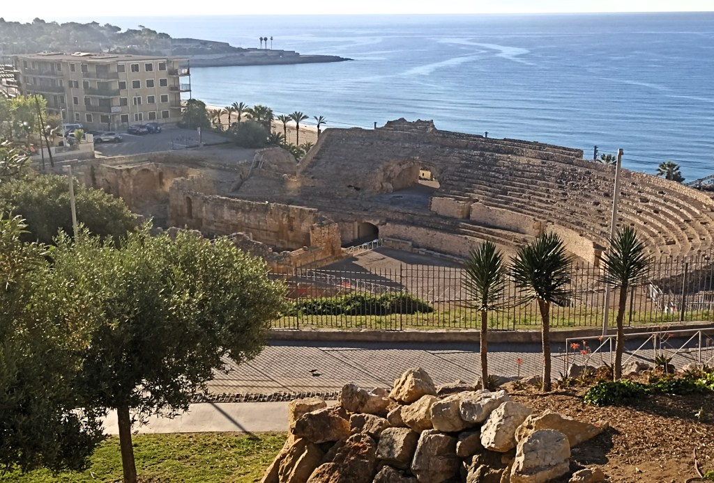Malduermo y me levanto temprano, extraño la cama y el horario. Lloviznaba anoche cuando al fin pude llegar a mi destino, tras un largo día de viaje con trayecto suplementario, la estación de tren de Tarragona se encuentra fuera de la ciudad, fue preciso esperar durante casi una hora el autobús que me acercara. Busco un bar abierto para desayunar y, enseguida, me pongo en marcha ansioso por iniciar esta nueva serie de etapas, por retomar mi Ruta Mediterránea. Desciendo desde la plaza de la Font, extramuros de la antigua ciudad romana, hasta la Torre del Rey, hacia la fachada marítima. Tomo plena conciencia de que camino sobre los cascotes acumulados de más de dos milenios de esplendorosa cultura material -como ocurre en Cartagena-, de que desde que fue capital de la Cesetania íbera, capital de la provincia romana Tarraconense, la Hispania Citerior, e importante ciudad visigoda del reino de Narbona, se han ido superponiendo los restos de todo ese esplendor. Paso junto a las ruinas emergidas del Circo romano, del siglo I d. C., en su mayor parte enterrado bajo edificios del XIX; circundo el Anfiteatro, violentado en el siglo XII, ocupado en parte con la iglesia románica de Santa María del Milagro, levantada a su vez sobre una primitiva basílica paleocristiana, que sería también cementerio, convento de los trinitarios y prisión. Recalo en la playa del Miracle, toco arena, veo mar. Saludo y agasajo al amigo recuperado, al estimado anfitrión, como perrillo ratonero me agacho y aproximo meneando la cola. Me enjuago la cara en un Mediterráneo calmoso y extraordinariamente transparente que en esta soleada mañana de mayo se abre magnánimo a mi contemplación, al disfrute de mis acortados sentidos. Estamos juntos otra vez, andando pues.
