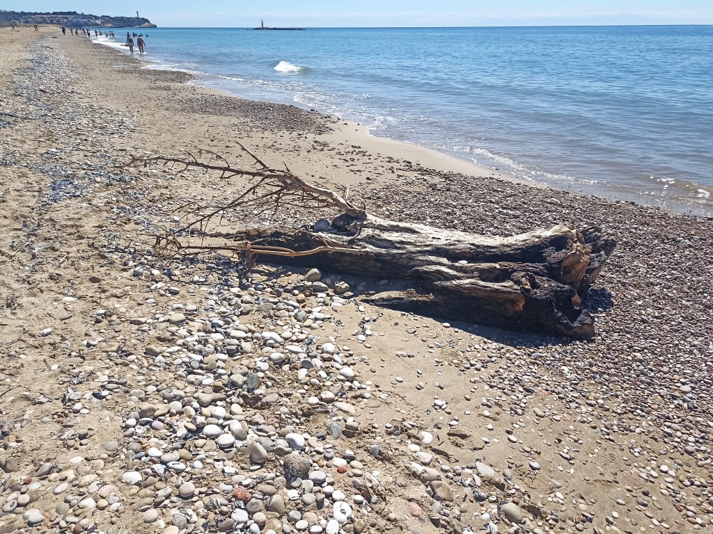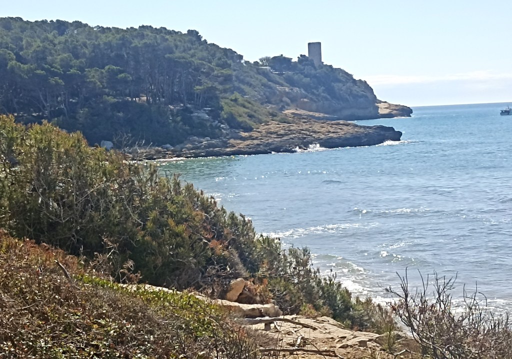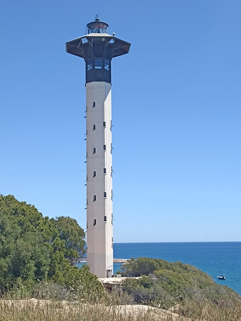 Se vuelve a enriscar el camino, camino de ronda, junto a la playa del Canyadell otra cantera en la misma roca, una improvisada piscina. Faro de Torredembarra, airoso y esbelto. Salvo el escollo de la Punta de la Galera, a cuyo cobijo surge el puerto deportivo y piso la playa de la Paella. Se abre un extenso arenal rectilíneo encauzado en sucesivos paseos marítimos que solo se ve interrumpido por el saliente de la ermita de la Mare de Déu y un palacio encastillado que fue de los reyes de Aragón que preceden a la Roca de San Gaetá.