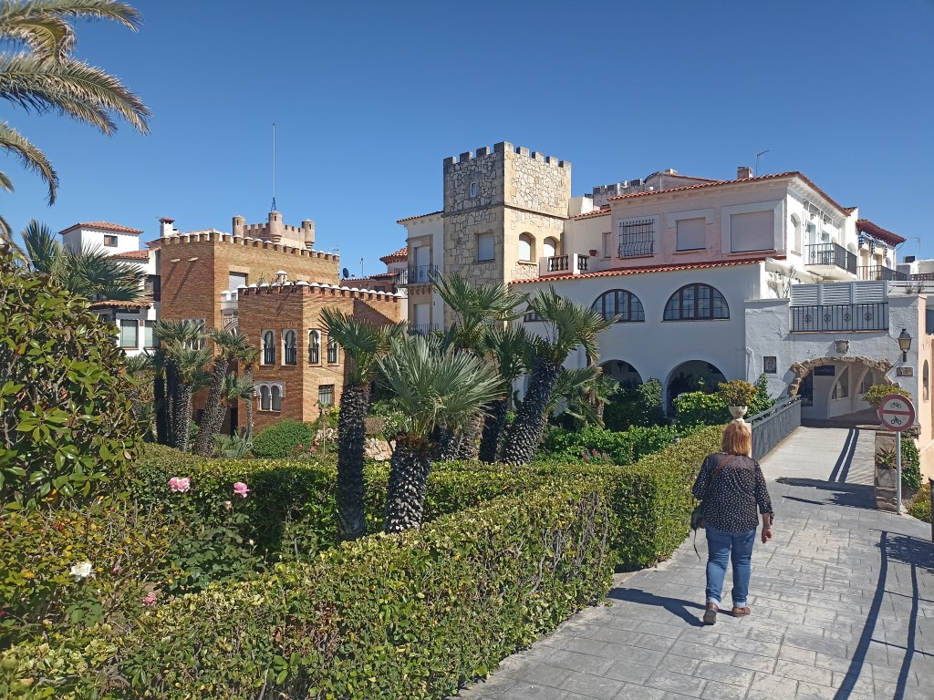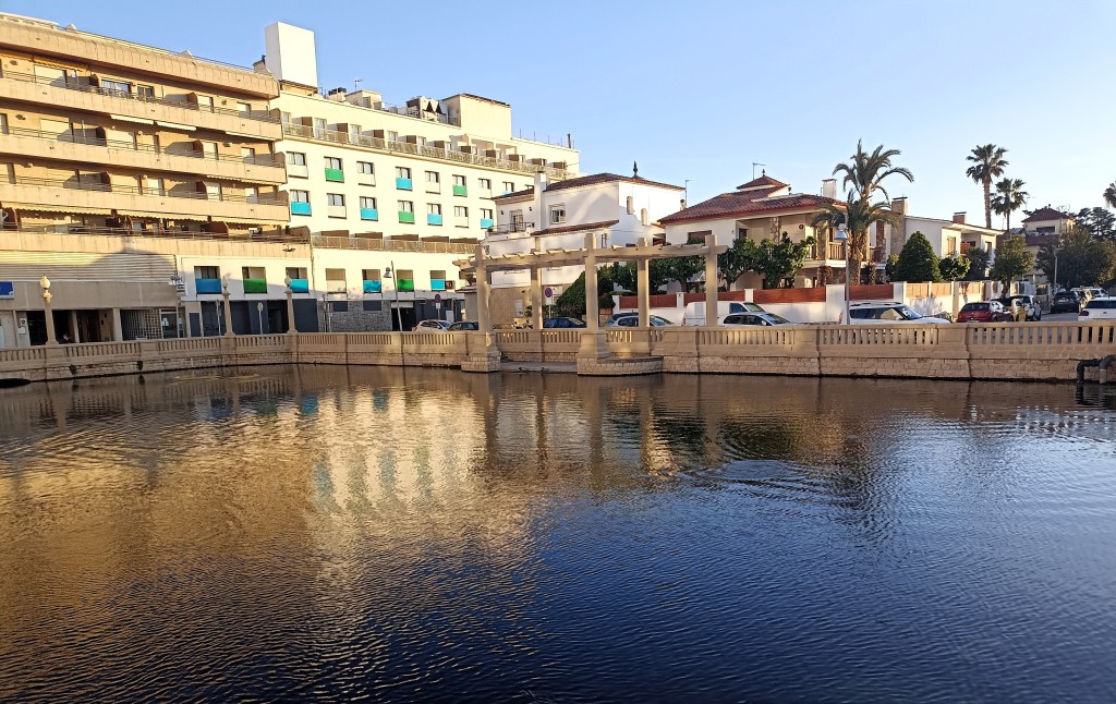 Enfrente, al otro lado de la carretera nacional, que una pasarela sobrevolada permite atravesar hasta la playa, siguen en su lugar los refrescantes y los restaurantes, las terrazas acristaladas donde bajábamos a tomar el aperitivo, la escuela de vela, el camping Las Palmeras… Poco o nada ha cambiado esta parte, este lado costero, mucho el otro: la playa ha mermado, ¡ y de que manera!, se ha reducido en sus dos terceras partes. El arenal escueto, de unas decenas de metros, no deja imaginar la ancha franja que conocimos hace solo unas décadas. Se agolpan sensaciones encontradas, recuerdos de aquellos días de asueto, pero el espacio que los contiene ha mermado, como en la memoria de un niño que vuelve a sus escenarios infantiles y constata que es él el que ha crecido y modificado su escala. En este caso es al contrario.