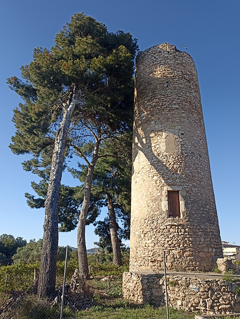 Por la tarde, tras el descanso, todavía maltrecho, salgo a buscar lo que queda del recinto amurallado del antiguo Castillo de Geltrú. La ciudad es extensa, subo un pequeño desnivel hacia la parte alta del pueblo, recorro los dos kilómetros que dista la Torre d´Enveja (de la Envidia) o de San Joan, lo cual, en mi actual estado, tiene mucho mérito. La diviso airosa presidiendo una zona verde, recreativa. Junto a ella, formando un conjunto, se encuentra la capilla de San Juan, románica del siglo XII, aunque su interior es gótico, de factura muy sencilla, de una sola nave. Parece ser que se levantó en 1225, el día de San Juan, al reconquistarse la torre. Fue la capilla del castillo. En cuanto a la torre, data del XIII, aunque se levantó sobre los cimientos de otra anterior. Sorprende por su altura, 12 m., tiene además un sótano de 4m. Sus tres pisos contienen aberturas de ventanas y puerta enmarcadas en piedra, lo que la hace más vistosa. Se encontraba en el recinto amurallado de la ciudad, que presidía el castillo de Geltrú, que se documenta desde 1080, aunque los restos actuales datan del XII, se le añadieron dependencias posteriores entre el XIII y el XVII, por lo que se encuentra muy transformado. Se articula el conjunto de planta rectangular en torno a un patio central. La fachada E conserva la base de una torre cuadrangular, que es la parte más antigua, s XII. Fue restaurado a principios del XX.