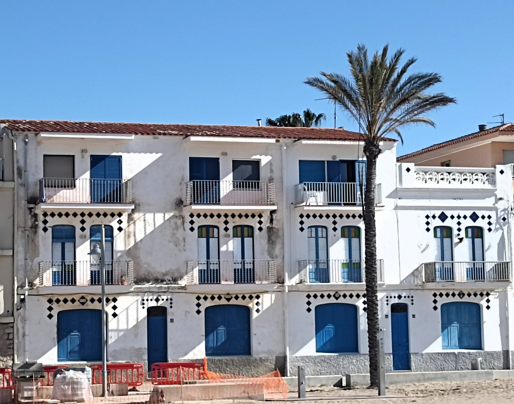 Subsiste una atractiva escultura cubista de un toro, cerca del puerto. Extraño con los tiempos que corren para la fiesta en Cataluña. Pero supongo que la existencia del Espacio Guinovart, un pequeño museo en la Torre de Ribes Roges, influye. Torre Blava (azul), como también se la conoce, es una carlina o torre carlista del XIX, completamente cilíndrica, sin talud, en medio de una rotonda. Lo reseñable es que, después de un período en el que se pensó eliminarla, fue restaurada entre 1998 y 2000, se sobrealzó y se habilitó como espacio artístico dedicado al Mediterráneo ya los marineros por Joseph Guinovart, artista barcelonés. Una pena que a mi llegada se encuentre cerrada. Es una constante en las torres y castillos que visito, bien por lo deslucido de las fechas, fuera de la temporada alta veraniega, o por las deshoras a las que acostumbro llegar.