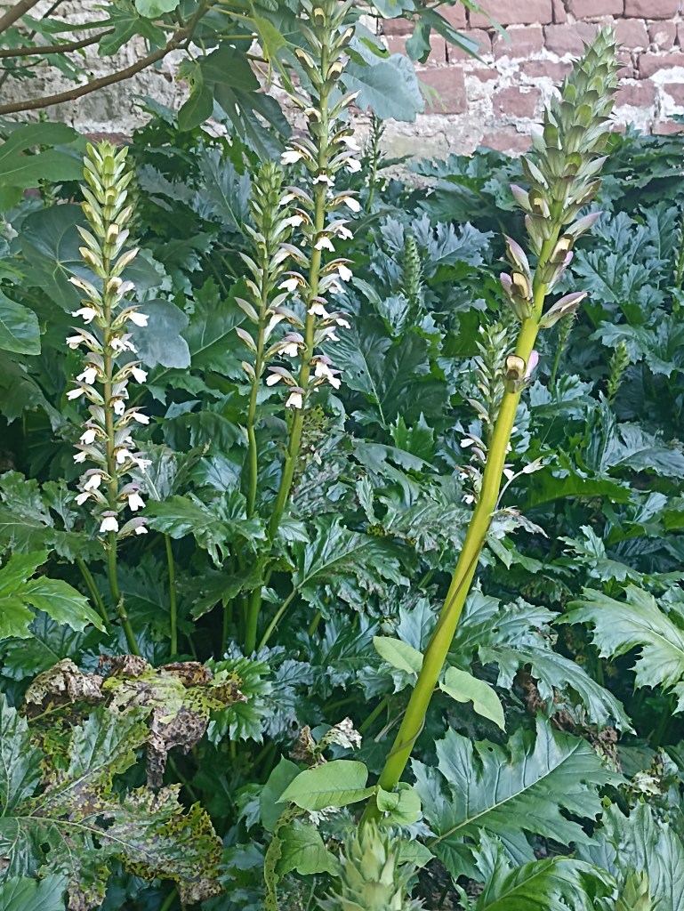 Doy una vuelta a todo lo largo de la muralla. En el lado meridional del castillo se agolpan multitud de plantas de acanto tapizando el suelo por completo, sus lustrosas y artísticas hojas (recordemos que, según Vitruvio, inspiraron al escultor Calímaco para crear el capitel corintio, que viene a ser el recubrimiento que dichas hojas hacen a una cesta), de un espeso verdor, florecen elegantes, lo hacen en airosas varas salpicadas de campañillas blancas. Emana de este rincón una mermelada de frescor, una ligera humedad que envuelve y reconforta.