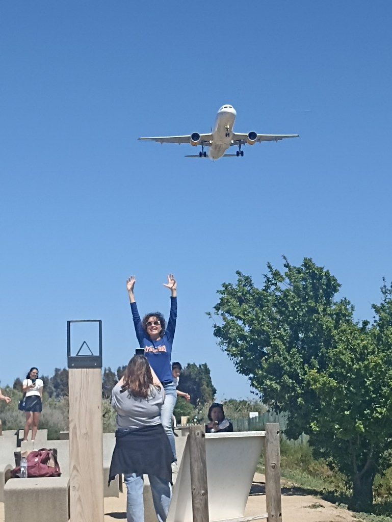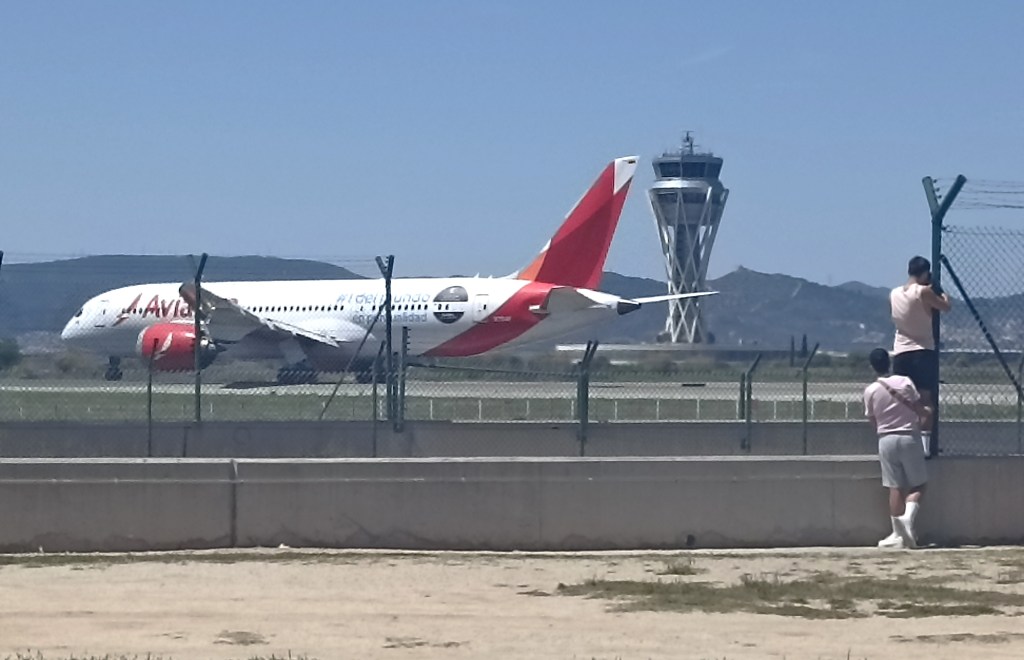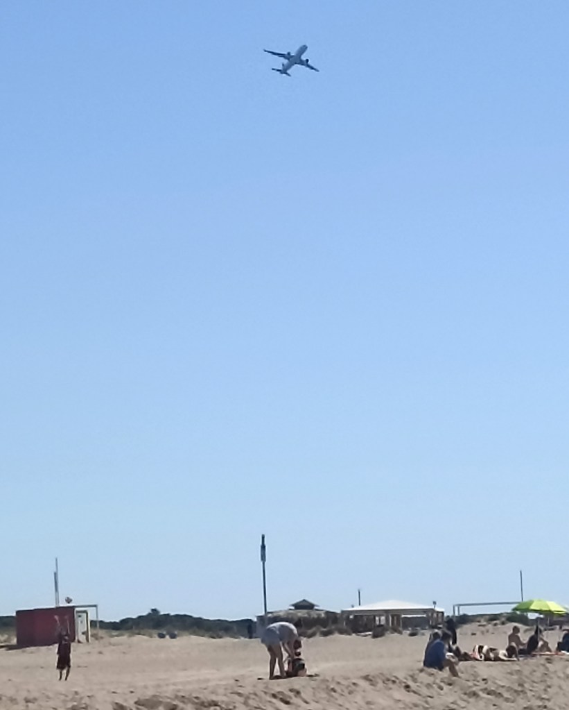 Llego al mirador de la cola del aeropuerto, su parte posterior, perfectamente habilitado (bancos, una fuente, paneles informativos sobre los diferentes tipos de aviones -curioso, recuerdan otros precedentes que ayudan a identificar a las aves-, etc) para pasar el rato contemplando los despegues de los aviones que, como ya tuve ocasión de comprobar al avistarlos desde la playa, se suceden con una celeridad y una eficacia apabullante.