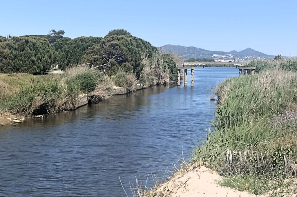 Llego a la riera de Sant Climent, un destartalada valla de alambre, sobre el puente que la salva, pretende impedir el paso. Surge la silueta de un mirador de madera, una torreta de no demasiada altura que ofrece una buena visual del entorno lacustre. Sigo con mi camino por una despejada playa, solo algunas pisadas recientes y alguna gaviota osan perturbar su alisado piso de arena. Sé que recorro terreno ganado al mar, al río, más propiamente, suelo firme en lo que antes fue una terreno deltaico muy extenso, del que restan apenas algunas lagunas costeras. El estanque de la Reserva Natural Parcial de Remolar-Filipines, lindero con el propio aeropuerto del Prat, hoy aeropuerto Josep Tarradellas, es un buen ejemplo de ello.