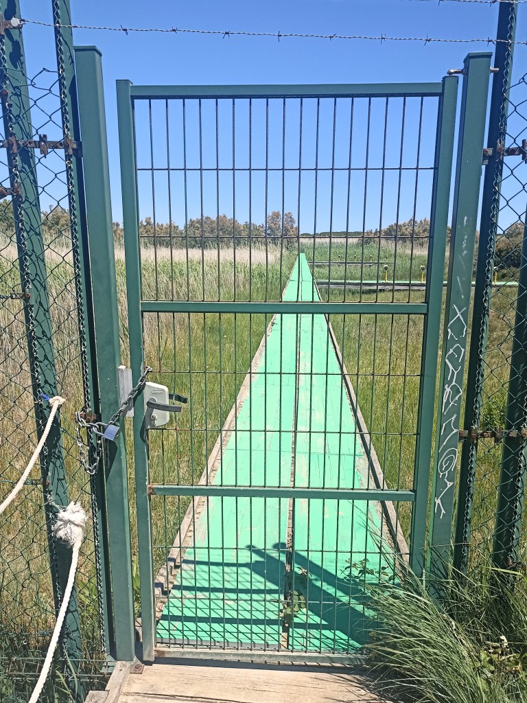 Cojo, desde la playa, un sendero que, dirigiéndose al interior, acerca al aeropuerto. Atravieso parte de La Ricarda, en un tramo conocido como Estanque de La Isla, por una pasarela debidamente señalizada. Llego a una esquina de la alambrada del aeropuerto donde existe un mirador. Un par de chavales, encaramados a ella, se entretienen haciendo fotos a los aviones que despegan. Sigo bordeándolo, tomo el camino de la Bunyola que atraviesa, en algún tramo, las lagunas. Se han habilitado unas pasarelas de madera sobre ellas. Asombra comprobar cómo se han colocado balizas señalizadoras para el aterrizaje de los aviones fuera de las instalaciones del aeropuerto, en el mismo terreno plagado de juncos y vegetación lacustre que lo circunda, sin, aparentemente, dañarlo.