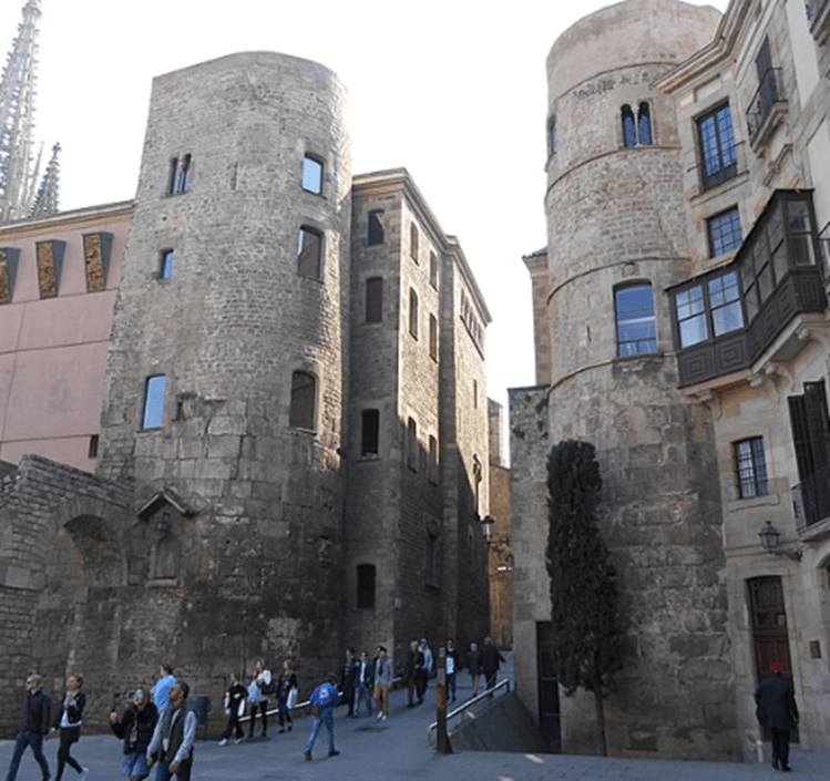 También me acerco al centro mismo de la urbe romana, origen de la ciudad, cerca de la plaza de San Jaume. Una piedra, incrustada en el suelo, señala el que fue su primitivo enclave. Aunque hay que apuntar que existió un originario asentamiento ibero, de layetanos, en la montaña de Montjuic, del que no quedan restos, y otro posterior aquí mismo.