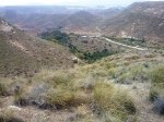Una vez que salgo del embudo que supone este valle feraz sin rambla que lo origine (el agua de una balsa que he visto debe manar del subsuelo), pero con seis pequeñas hendiduras que tajan los paredones que lo circundan, puedo apreciar la particularidad de este aislado hondón. Parece un estadio griego para carreras de cuadrigas, un coliseo ovalado, visto desde arriba, poblado por amantes de la vida tranquila, filósofos, modernos eremitas. Una pacífica comunidad de diletantes que no sé si alcanzan a plantearse qué hacer con sus vidas, cuando menos si saben que no hacer: adocenarse. No que no es poco!