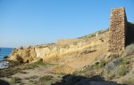 Un abundante patrimonio arqueológico industrial de puentes, túneles, silos, embarcaderos, fundiciones, cargueros, puertos, líneas de ferrocarril, etc. me aguarda a lo largo del recorrido que transcurre básicamente por una carretera y algunos caminos que invitan a descender hacia recónditas y recogidas calas: cala del Invencible, del Peñón Cortado, de Cristal, de las Conchas, etc., tan bonitas como hacen suponer sus nombres. Después de recalar en la mayoría de ellas, aunque por fuerza alguna se me escapa, arribo al Calón, la más poblada y extensa. Me siento a descansar en unas piedras junto a la playa, las mismas en las que una mañana contemplaba -tiempo ha- a una familia francesa, la matriarca en medio del agua sentada en una silla plegable, sacando erizos negros y devorándolos. Los rajaban por la mitad con unas tenazas especiales y con una cucharilla sacaban la escasa y sabrosa carne. Ante mi interés, me dieron a probar.