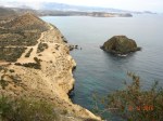 Debajo del castillo, prácticamente a tiro de piedra, se encuentra Isla Negra, de origen volcánico, con unos cuantos peñascos entorno aflorando. Junto con la Isla de Terreros, fueron declaradas en 2001 Monumentos Naturales y ZEPA (Zona de Especial Protección de Aves). Veo los acantilados que continúan la costa, llamados de Honduras, están protegidos como Lugar de Interés Geológico. Además las sierras del entorno gozan de protección jurídica como LIC (Lugar de Interés Comunitario). Los fondos submarinos a lo largo de unos 50 km se han catalogado como ZEIP (Zona de Especial Importancia para el Mediterráneo) ¡Será por protección! Recelo de tanta denominación de origen ostentosa, sospecho de la palabrería barata de los políticos siempre -cuanto más ampulosa, más recelo me produce-, enmascaran sus peores intenciones con los términos más rimbombantes y melodramáticos para luego, a la hora de la verdad, endosar un macro-proyecto constructivo disfrazado de inversión muchimillonaria,con futuros puestos de trabajo por millares, empleos indirectos, y bla, bla, bla… Sería más simple, rápido y eficaz -pienso- solicitar la declaración de Parque Natural, y punto. La totalidad de la Sierra de la Almagrera lo merece también, se podría reconvertir en un Parque Arqueológico Minero (como pretendían hacer en Mazarrón con una de sus últimas minas en uso) y, por supuesto, la franja costera y sus inmediaciones del tramo entre San Juan de Terreros y Calarreona, con sus ricos fondos marinos incluidos. Eso sería lo lógico y natural, además son zonas difícilmente construibles y rodeadas ya de suficientes plazas hoteleras y vacacionales. Pero en este país lo natural es excepcional y las aberraciones se convierten en moneda corriente, desgraciadamente.