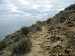 Ahíto, asombrado y expectante ante tanto prodigio, tras un periodo de tiempo que percibo indeterminado, pero que resulta absolutamente pleno, asumo que he de retomar la marcha. Después de un rato caminando desciendo ya a cuestiones más terrenales y circunstanciales. Me paro a considerar, por ejemplo, que discurro por un tramo del GR (sendero de Gran Recorrido) 92 (costero mediterráneo). Recuerdo que antes de ayer recorría el PR 96-A, sendero de Pequeño Recorrido, en concreto la Senda de la Menga, incluido en este GR 92 que va, nada más y nada menos, que desde Tarifa, en Cádiz, a Portbou, en la frontera con Francia. Suma está antigua calzada romana, que coincide en muchos tramos con la Vía Augusta, unos 1525 km aproximadamente, a falta de añadirle el tramo granadino y el gaditano. En Cataluña recorre 580 km desde Port-Bou hasta Uldecona (Tarragona), en la Comunidad Valenciana 425 desde Traiguera en Vinaroz hasta el Pilar de la Horadada, en la Murciana 180 desde San Pedro del Pinatar hasta las Cuatro Calas -que estoy a punto de alcanzar hoy-, además del trozo de costa almeriense que llevo andado desde que inicié esta aventura en San Miguel de Cabo de Gata hasta el final de la provincia en San Juan de Terreros, unos 124 km. En total suponen unos 1309 kilómetros de recorrido, de los que restarían entonces unos 1159, según mis cálculos, para llegar a PortBou (en principio mi objetivo era de cabo a cabo, de Gata a Creus, pero por 25 míseros kilómetros finalizo en Portbou, ¡faltaría más!). Hay una página informativa de internet sobre el GR 92 que va señalando la distancia restante y al clicar sobre Águilas, que es desde donde hago el supuesto, me informa de que me faltan 1075 km, una diferencia con la anterior nada despreciable de 84 km, lo que supone unos tres o cuatro días más de caminata. Veré de cuadrar las cifras aunque, por el momento, queda tanto que casi no merece la pena.