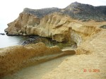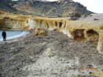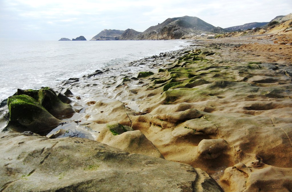 Comienzan los prodigios escultóricos de la madre naturaleza sobre los paredones de margas y areniscas blancas y amarillas que encontramos a continuación. Roídas por el salitre, la humedad y los vientos cargados de proyectiles de arena, se aprecian encajes de bolillos y aguja de gancho, erosión alveolar, coliflores de piedra más dura a modo de capiteles vegetales sobre prominentes columnas de arena. Culminará esta exposición escultórica a cielo abierto en las grandes setas y demás formas caprichosas de la Ciudad Encantada de Bolnuevo, en Mazarrón, que están por llegar.