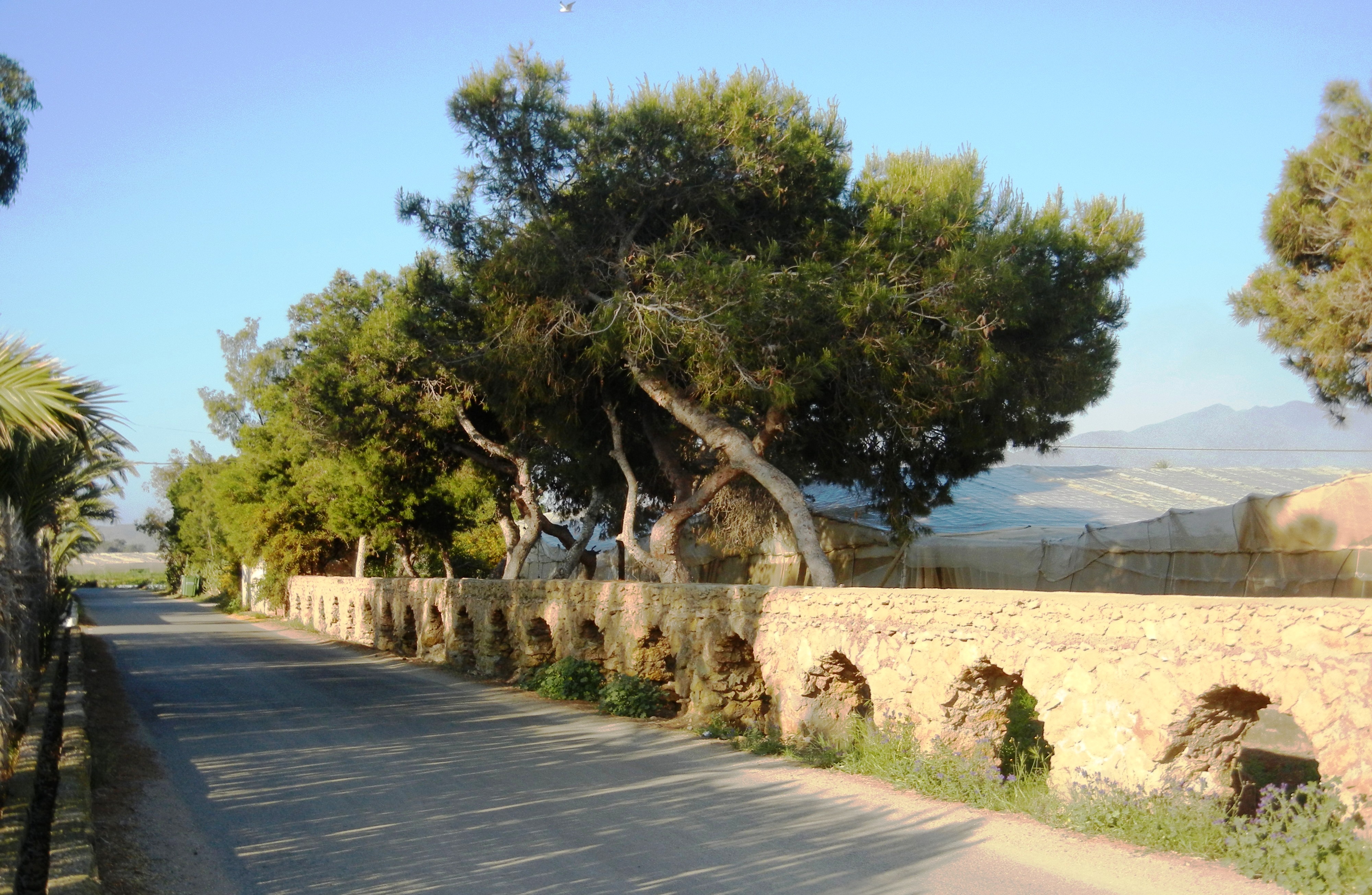 Empieza la larga y pedregosa playa de Covaticas, territorios de auto caravanas y roulottes, asentamiento, en tiempos, bajo los pinos rastreros, de inmigrantes llegados en pateras, poco apta para el baño por los tramos de piedras y la fuerza de las olas rompientes olas. En realidad solo queda un estrecho pasillo para el camino de tierra que recorro, nuevos invernaderos han invadido el resto. Cañada de Gallego, pueblo al interior, era hasta no hace mucho, un pobre asentamiento que ahora se ha cubierto por completo de plástico y en el que destacan naves de los almacenes de varias empresas fruteras, y algunos chalets de dudoso gusto levantados al calor del dinero rápido.