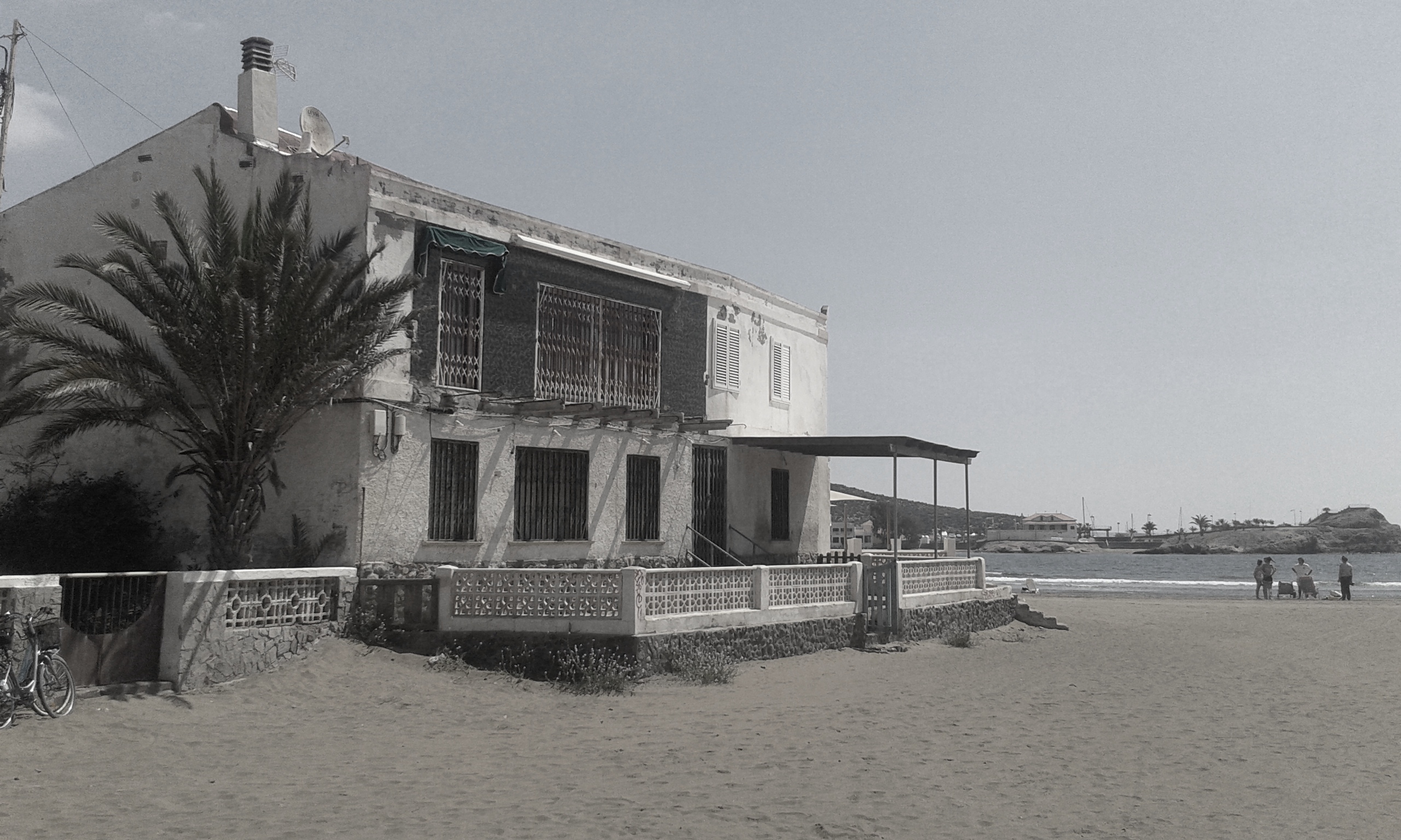 Es preciso llegarse hasta aquí, alcanzar la olvidada y recóndita playa de arena no tan fina, estrecha, escueta, más pequeña de lo que recordaba, más inaccesible, junto al pequeño promontorio, bajo de su silueta protectora; sobre la que se recorta desde que soy capaz de recordar el hotelito trasnochado y desgarbado, antiguo aún antes de acabarse, casi abandonado, con uno de esos nombres tropicales pretenciosos que una vez estuvieron de moda, algo así como hotel Miami, Florida, Calypso, Las Vegas… Avejentado sin disimulo, ajado por las muchas temporadas que hace que no conoce pintura (seguramente la que persiste fue la primera y única) ni mantenimientos, comidas por el oxido sus barandillas.