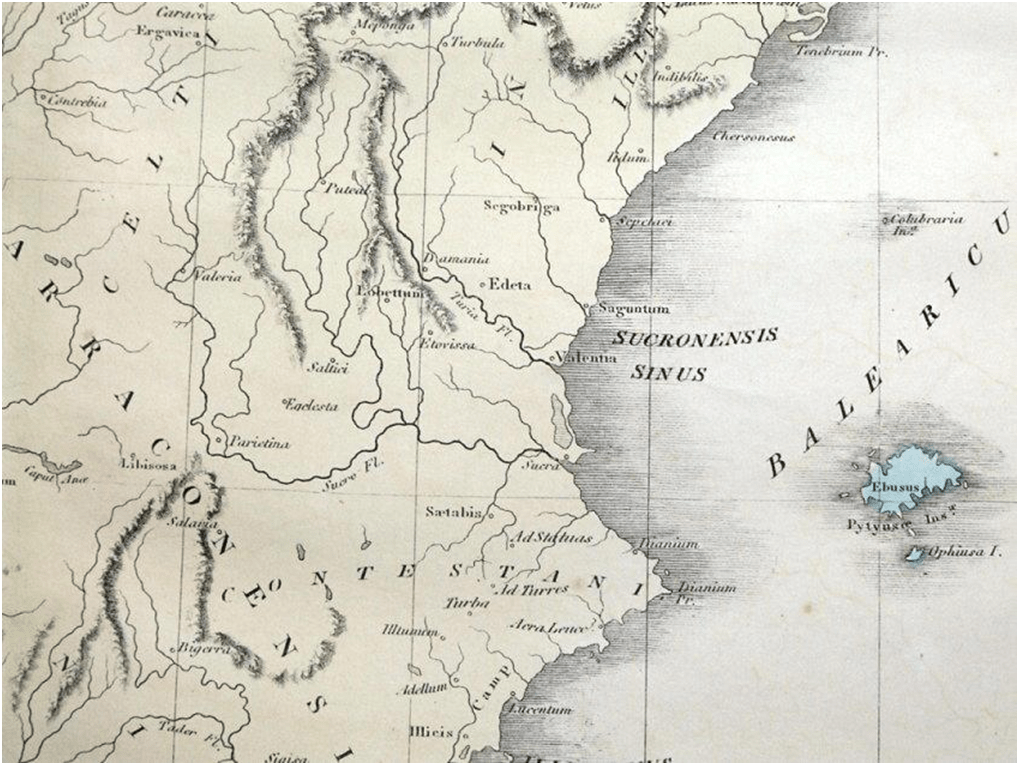 SUCRONENSIS SINUS comprende una zona amplia que iba desde la actual Almenara hasta el Montgó: una franja litoral con estuarios, lagunas y desembocaduras de ríos apta por la variabilidad de recursos para la navegación y el comercio. Es lógico suponer su ritualización mediante el uso de cuevas-santuario y la señalización de determinados puntos geográficos que destacan en medio del paisaje lacustre y llano que la definen.