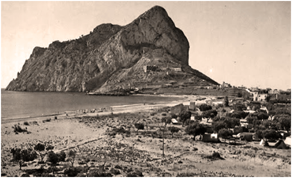 Principia el verdadero Ifach, bronco, delirante y eterno de cara al mar libre. Madroñal, carrasca, pinares, toda la breña tendida, rebanada por la hoz del viento, toda verdeazul, crujiendo de infinito. Altitud firme de rocas tiernas, con estruendo vegetal y marino. Azules gloriosos. He aquí la vieja virginidad del mundo. Vieja virginidad recién comprada por seis mil reales. Su amo le pone puertas al cielo, al campo y al mar.